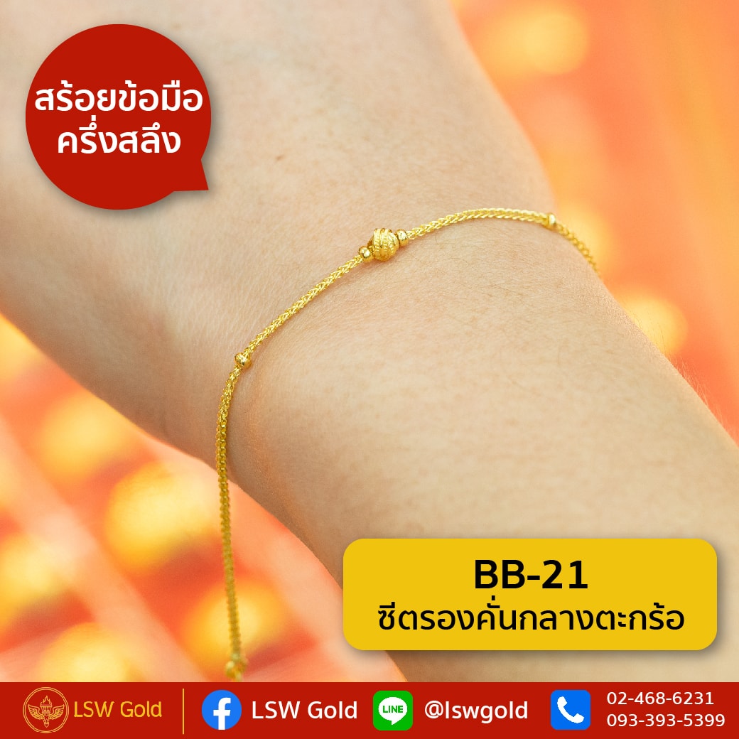 สร้อยข้อมือทองคำแท้ ครึ่ง สลึง (1.89 กรัม) ลายซีตรองคั่นกลางตะกร้อ BB-21