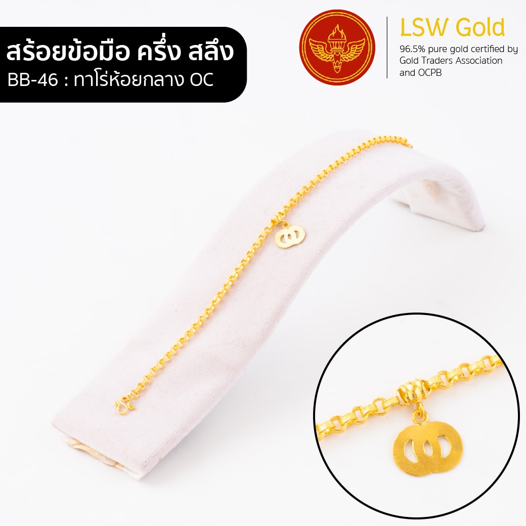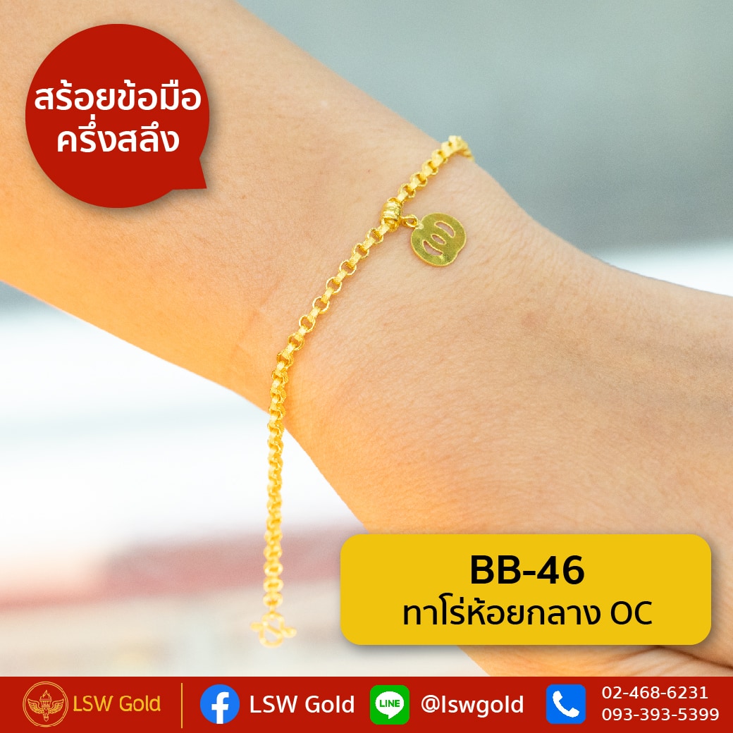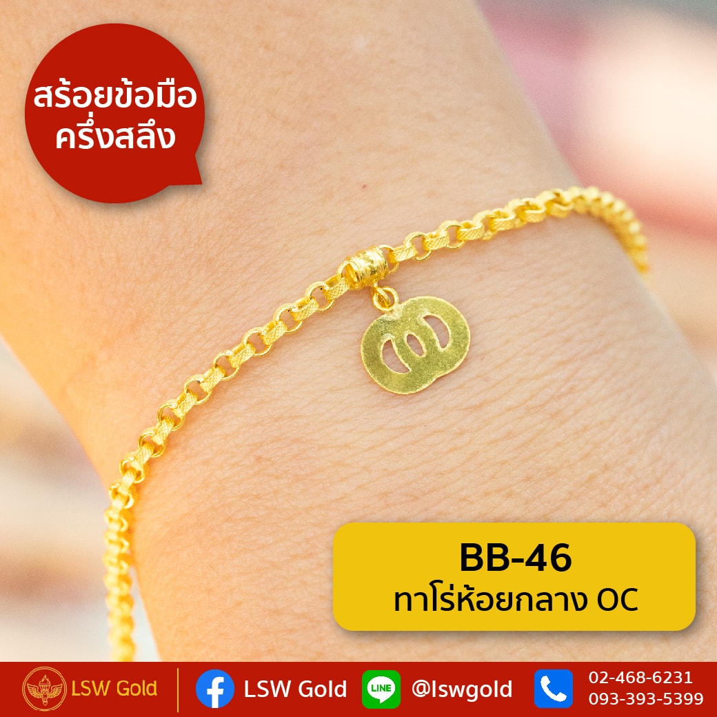 สร้อยข้อมือทองคำแท้ ครึ่ง สลึง (1.89 กรัม) ลายทาโร่ห้อยกลาง OC BB-46