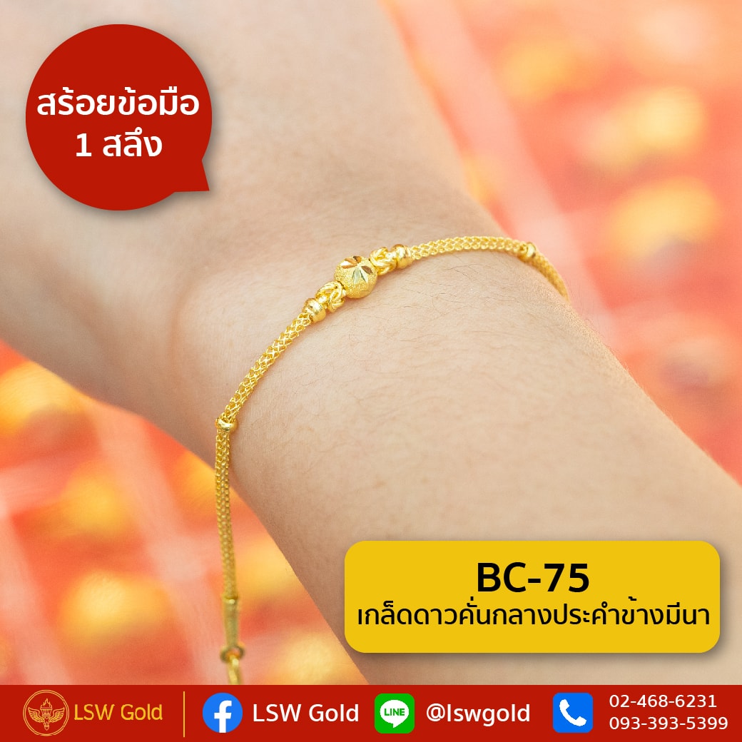 สร้อยข้อมือทองคำแท้ 1 สลึง (3.79 กรัม) ลายเกล็ดดาวคั่นกลางประคำข้างมีนา BC-75