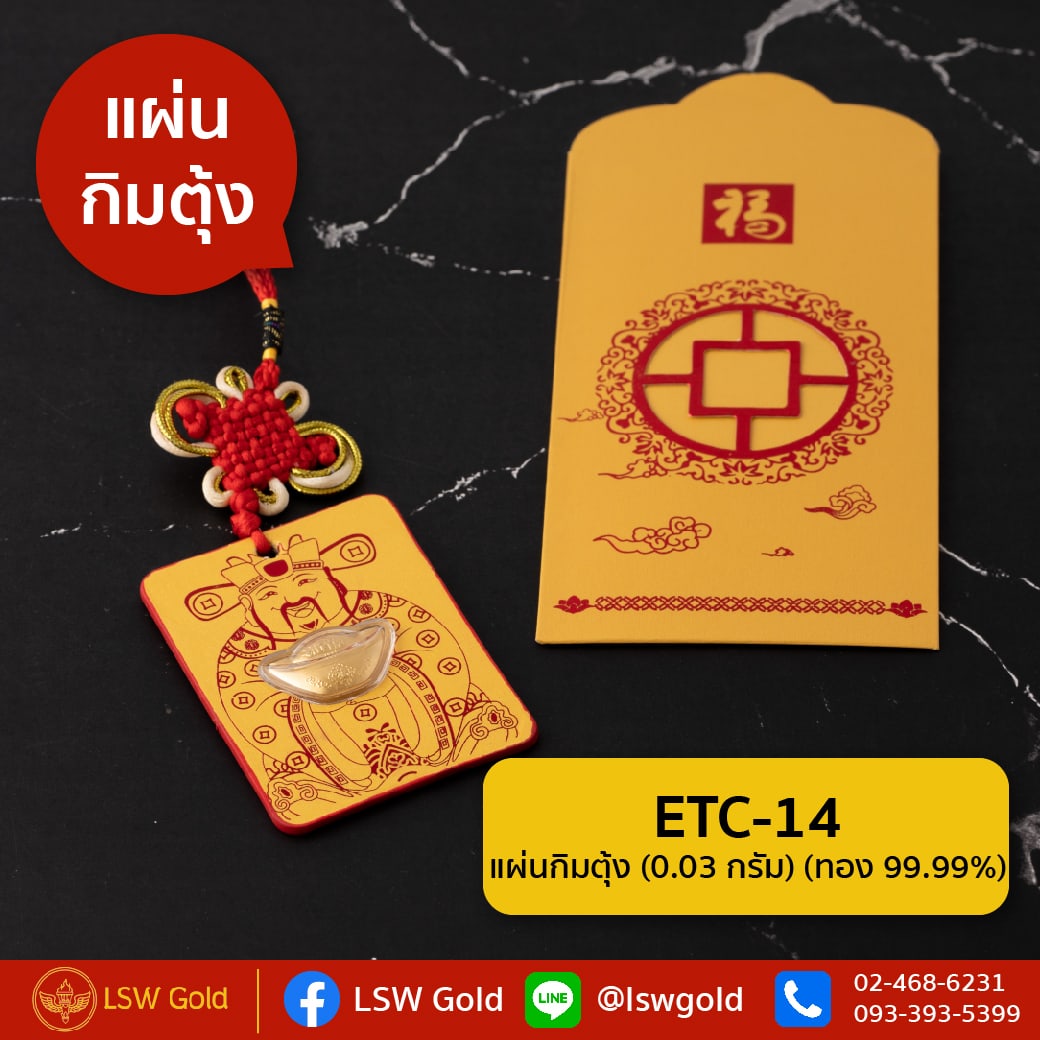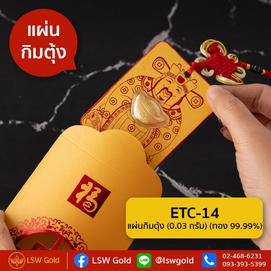 แผ่นกิมตุ้ง ทองคำแท้ 99.99% น้ำหนัก 0.03 กรัม ETC-14