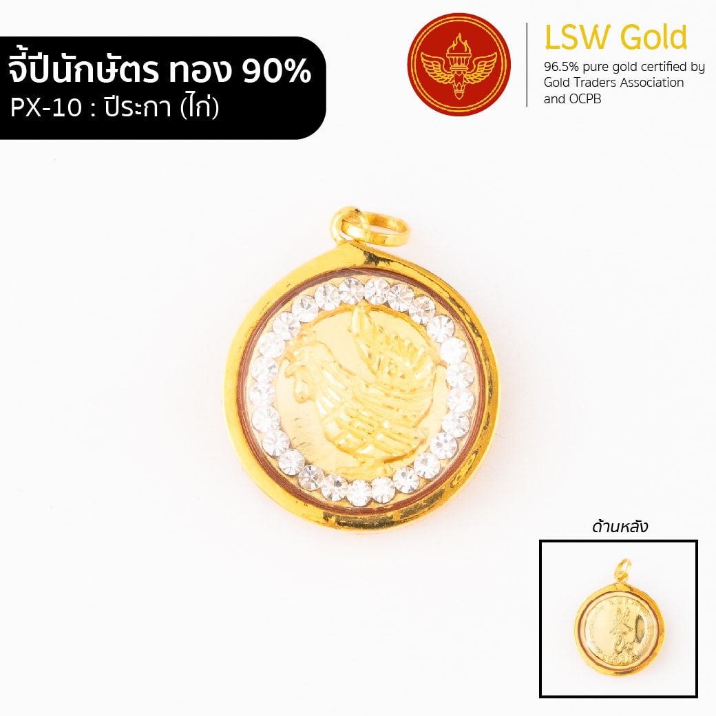 จี้ปีนักษัตร ล้อมพลอยสวิส กรอบทอง 90% ปีระกา (ไก่) PX-10