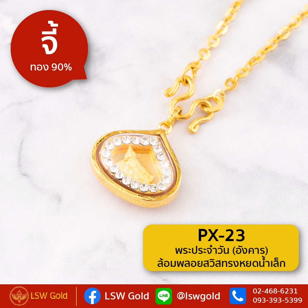 จี้พระประจำวัน ล้อยพลอยสวิส ทรงหยดน้ำเล็ก กรอบทองคำแท้ 90% วันอังคาร PX-23
