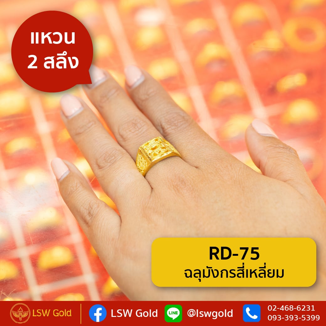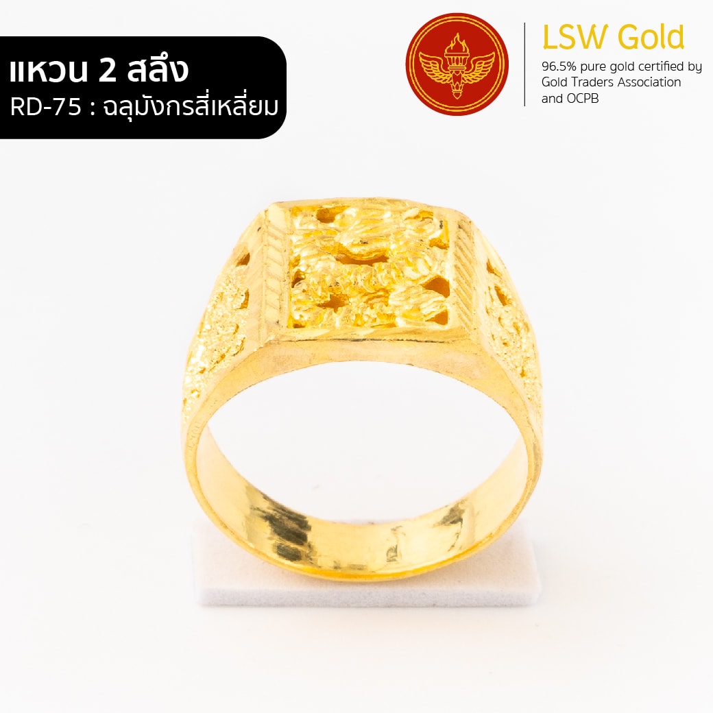 แหวนทองคำแท้ 2 สลึง (7.58กรัม) ลายฉลุมังกรสี่เหลี่ยม RD-75